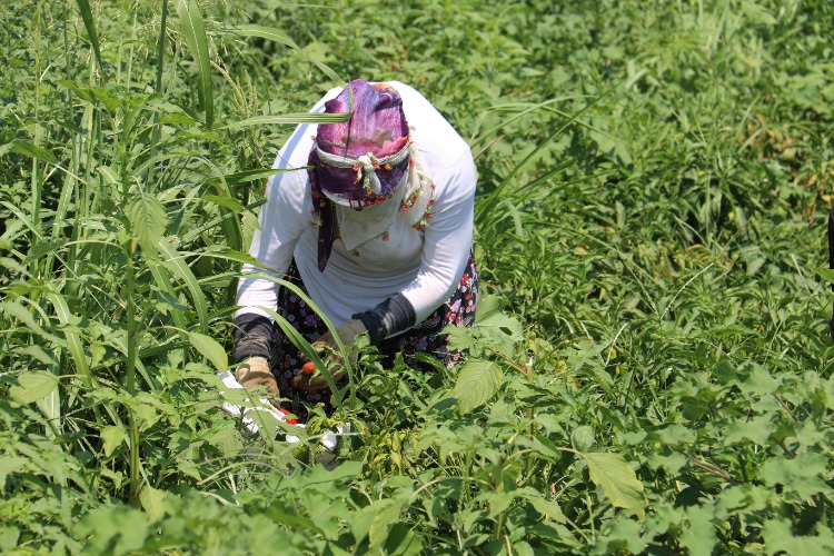 Elini yüzüne sürdüğü zaman yaşadığı zorluğu ifade eden İnci Yeşil, “Biber topluyoruz, sıcak havada. Ekmek paramız için çalışıyoruz, sıcak havada zor oluyor. Biber acı, şartlar zor. Yevmiyemiz 600 TL, rabbim yardımcımız olsun. Elini yüzüne sürersen yakar, gözlerin su damlatır” dedi.