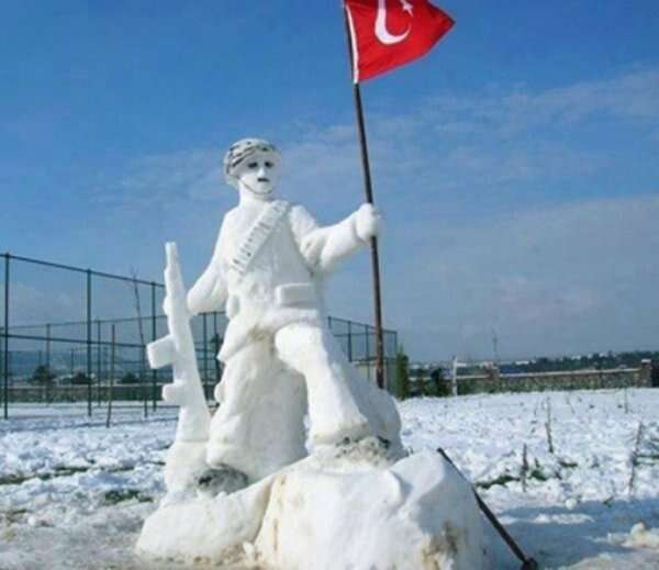 Kar yağışının olmazsa olmazı "kardan adam"lar yurdumuzun mizah yönünü gözler önüne seriyor.