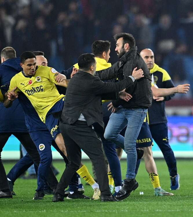 Trendyol Süper Lig’in 30. haftasında Trabzonspor ile Fenerbahçe, karşılaştı. Maçın ardından Fenerbahçeli futbolcular ile sahaya giren taraftarlar arasında olaylar çıktı.