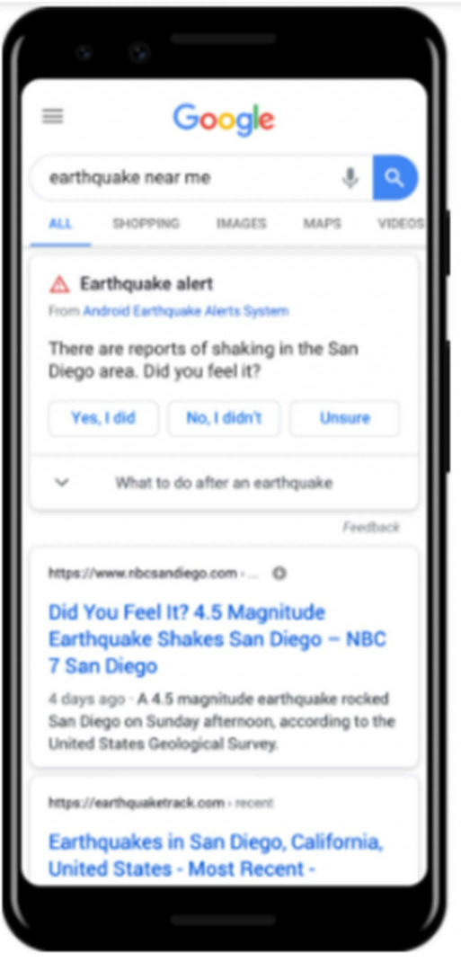 Google tarafından yapılan açıklamada, dünya genelindeki 5,0 ve üzeri sürüme sahip olan Android telefonların yarından itibaren mini bir depremölçer (sismograf) işlevi göreceği kaydedildi. Uygulama kapsamında, Android telefonların algıladığı sismik veriler, Google'ın veri tabanında toplanacak ve kullanıcılara bir uyarı mesajı gönderilecek. Bununla birlikte, deprem uygulamasıyla gelişmekte olan ülkelerde can ve mal kaybının önüne geçilmesi hedefleniyor. Ancak, Google dünya çapındaki tüm Android telefonlardan veri toplayacak olsa da, şu anda yalnızca ABD'nin Californiya'daki eyaletindeki kullanıcıların doğrudan bildirim alacağı açıklandı.