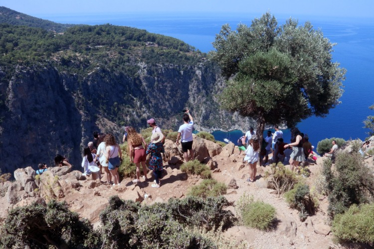Muğla'nın Fethiye ilçesindeki Faralya Mahallesi'nden Kelebekler Vadisi'nin nefes kesen manzarasını izlemek isteyenlerin sayısı her geçen yıl artıyor. Ziyaretçiler, sarp kayalıklara çıkarak bu doğal güzelliği fotoğraf karelerine sığdırmaya çalışıyor.