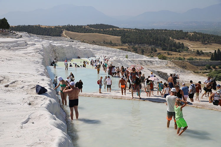 Pamukkale'de, haziranda günlük ortalama ziyaretçi sayısının 12 binin üzerinde olduğu, temmuz da ise bu sayının aşılmasının beklendiği öğrenildi.