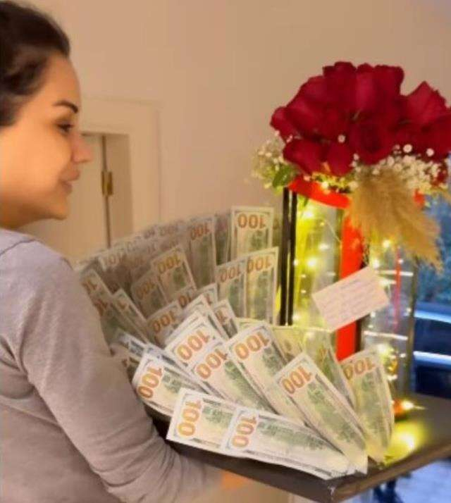 Dilan Polat'a aralık ayında da eşinden dolar ve eurodan oluşan çiçek şeklinde bir hediye gelmişti.