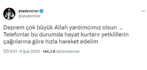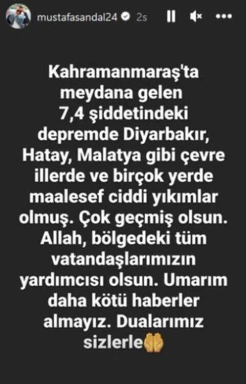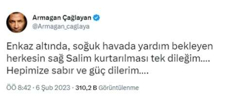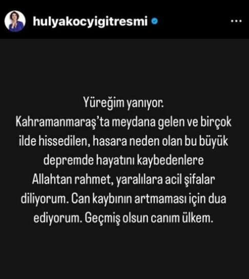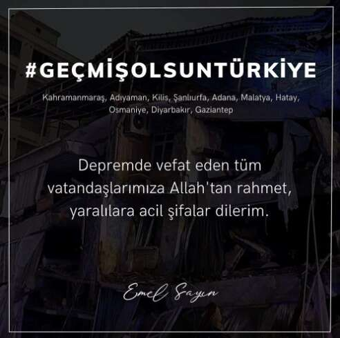 Kahramanmaraş'ta meydana gelen iki büyük deprem 10 ili etkiledi. Depremin ardından ünlü isimler sosyal medya hesaplarından geçmiş olsun ve başsağlığı mesajları yayınladı.
