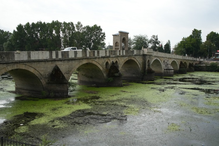 Edirne'de mevsim sıcaklıkların üzerinde seyreden hava sıcaklıklarıyla beraber yeteri kadar yağış alamayan Tunca Nehri'ndeki su akışı durdu ve nehrin rengi yeşile büründü.