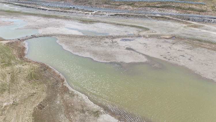 emelden 19,50 metre yüksekliğe sahip olan, 2 bin 750 metreküp su depolayan göletteki su, şehirde etkisini sürdüren sıcak havalar ve yağışın beklenen seviyede olmaması nedeniyle metrelerce çekildi.