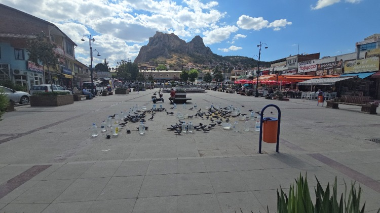 Güvercin ve serçelere özveriyle bakan Okutan, meydanın yeşil alana dönüştürülmesini talep ediyor.