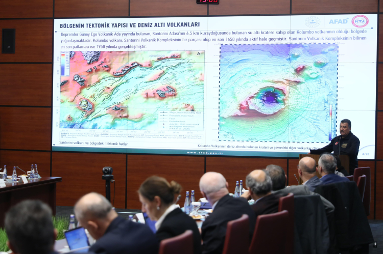 İçişleri Bakan Yardımcısı Münir Karaloğlu başkanlığında, AFAD tarafından Ege Denizi'ndeki Santorini Adası çevresindeki artan sismik aktivite ve olası riskler üzerine bir değerlendirme toplantısı yapıldı.