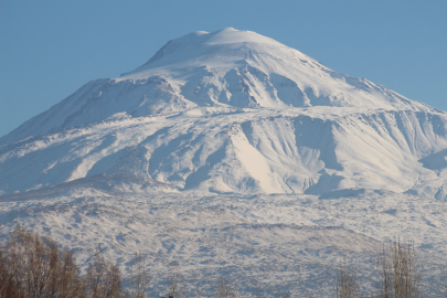 Iğdır'da iki gün önce etkili olan kar yağışı sonrası bulutların çekilmesiyle şehrin her noktasından görülebilen Ağrı Dağı'nın beyaza bürünmüş hali kendine hayran bırakıyor.