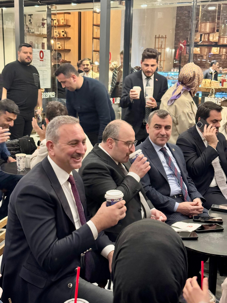 AK Parti Bursa Milletvekili Mustafa Varank ve AK Parti Grup Başkanvekili Abdulhamit Gül, Cumhuriyet Halk Partisi (CHP) Genel Başkanı Özgür Özel'in Espressolab’a yönelik boykot çağrılarının ardından, Ankara’da Espressolab'da gençlerle bir araya geldi.
