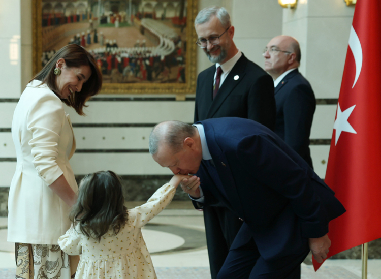 Büyükelçiler, protokol gereği önce güven mektuplarını Cumhurbaşkanı Erdoğan’a takdim etti, ardından büyükelçilik mensupları ve aile bireylerini tanıttı.