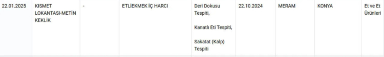 Konya Meram’da bulunan restoran, etli ekmek iç harcında yapılan incelemeler sonucunda, "Deri Dokusu", "Kanatlı Eti" ve "Sakatat (Kalp)" gibi maddelerin tespit edilmesiyle gündeme geldi.
