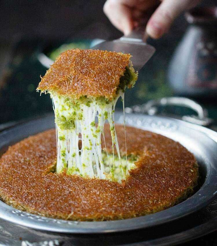 Künefe, peynir, irmik ve şuruptan yapılan, Orta Doğu ve Balkanlar'da popüler bir tatlıdır.