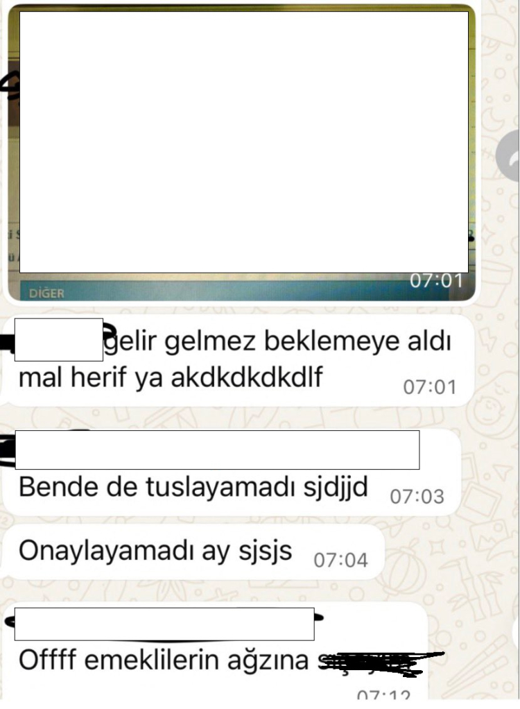İddiaların en dikkat çekici bölümünde, emekli bir müşterinin telefonda işlem yaparken tuşlama yapamaması nedeniyle personel gruplarında alay konusu edildiği öne sürüldü. Öztürk, ekran görüntülerinde emekli vatandaş için kullanılan ifadelerin insan onurunu zedelediğini belirterek, “Yaşlılığıyla ve çaresizliğiyle dalga geçilen bir emeklinin onuru ayaklar altına alınıyor. Bu büyük bir skandaldır” dedi.