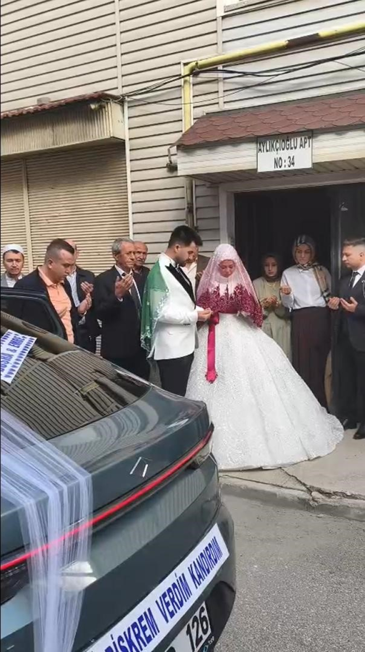 DAMAT YERLİ OTOMOBİLLE GELİNİ BABA EVİNDEN ALDI