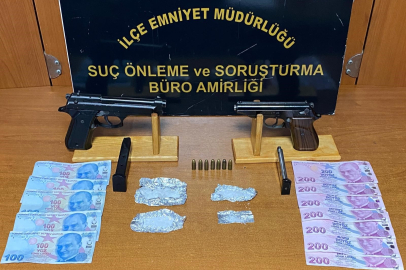 Şüpheli M.A.J.'nin evinde yapılan aramada 2.97 gram uyuşturucu madde, bir adet normal ve kuru sıkı tabanca, 5 adet mermi ile uyuşturucu ticaretinden elde edildiği düşünülen bin 900 TL nakit para ele geçirdi.