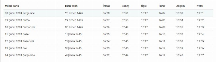 Afyonkarahisar namaz vakitleri | 8 Şubat Çarşamba|
