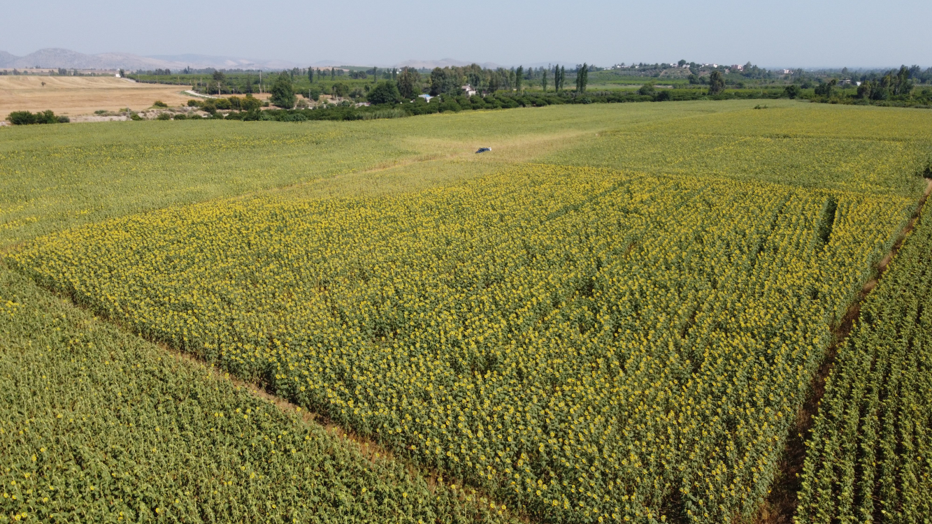 Tam olgunluğa ulaşamadan kuruma başlayan ayçiçek tarlalarındaki yarıklar kuralığı kuraklığı gözler önüne serdi. Aşırı sıcaklıkların etkili olduğu bölgede ayçiçek tarlalarındaki kuraklık manzarası havadan da görüntülendi.