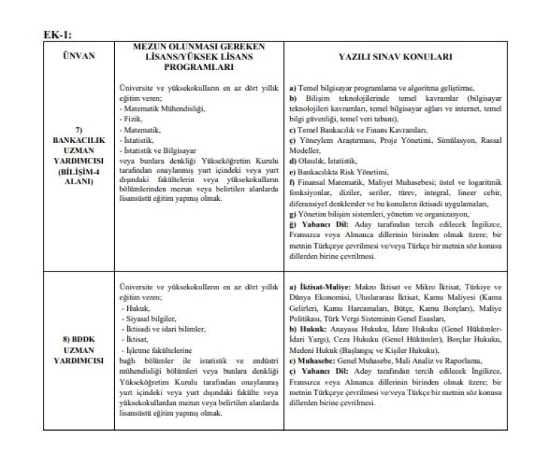 İşte BDDK’nın alım yapacağı kadrolar ve başvuru şartları..