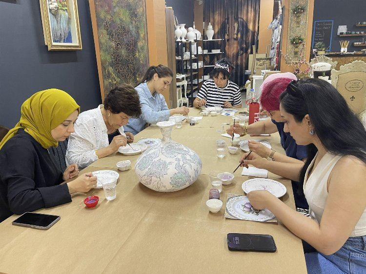 Osmaniye'de çini sanatı kursuna katılan kadınlar seramik üzerine işlenen motiflerle birbirinden güzel ürünler ortaya çıkarıyor.