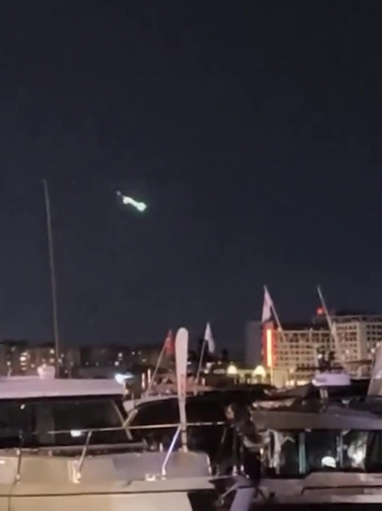Kentte akşam saatlerinde gökyüzünde görülen parlak ışık kütlesi aşağıya doğru inerek kayboldu.