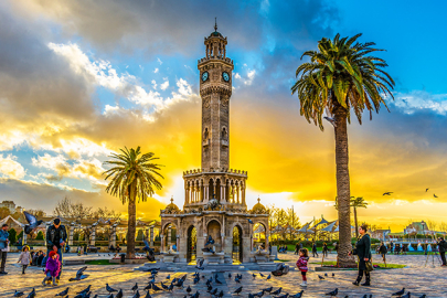 Saat Kulesi: İzmir'in simgelerinden biri olan Saat Kulesi, 1901 yılında inşa edilmiştir. Kule, şehrin birçok yerinden görülebilmektedir.