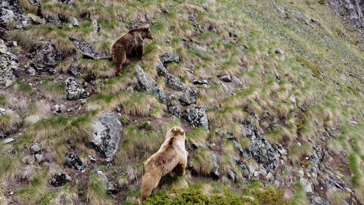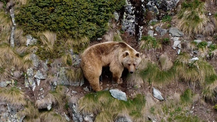 Bu kez doğada yine yemek arayan ayılar bu kez kendilerine ait yaşam alanında görüntülendi. Çamlıhemşin ilçesine bağlı 1884 metre yükseklikteki Elevit Yaylası’nda otlayan boz ayılar drone ile havadan görüntülendi.