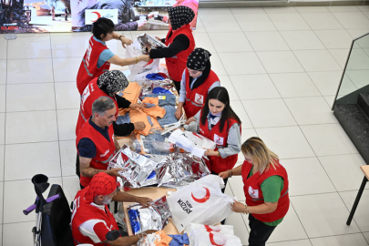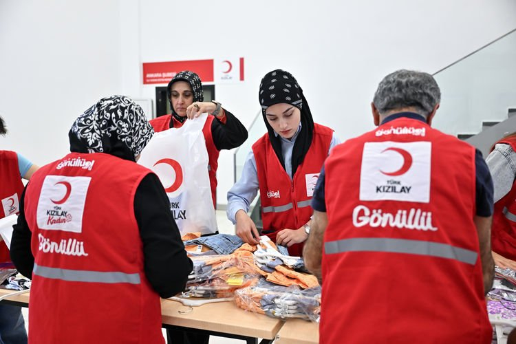 Türk Kızılay Ankara İl Merkezi'nde, gönüllülerin katkılarıyla bayramlık kıyafetler dağıtım için paketlendi.
