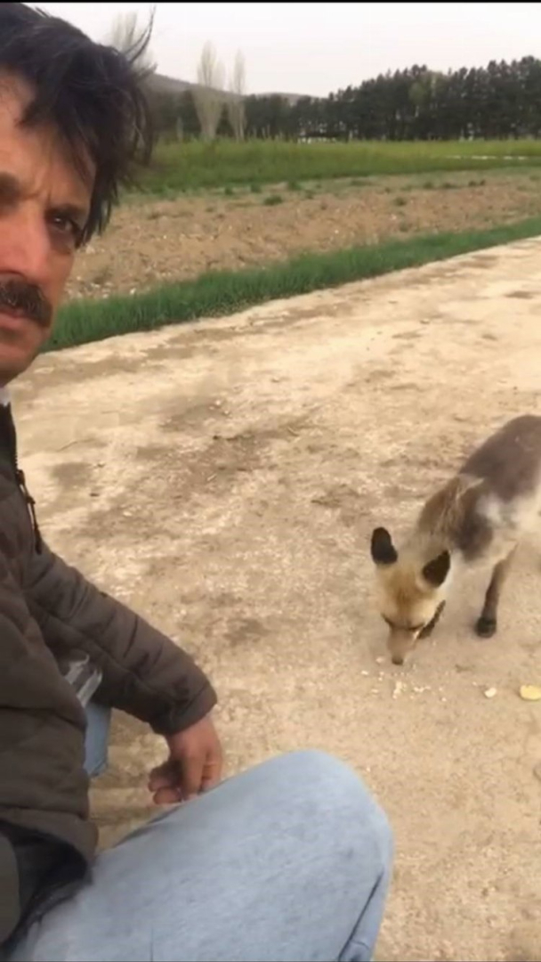 Tilkiye araçta bulunan kurabiyelerden veren Taşçıoğlu, bir güzel tilkiyi elleriyle besledi. Aç tilki ise kendisine uzatılan ellerden kaptığı kurabiyeleri yedikten sonra gözden kayboldu.