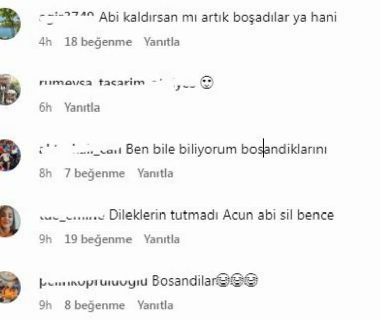 Acun Ilıcalı’nın fotoğrafa yazdığı şu iletiye de ‘dileklerin kabul olmadı’ yorumunda bulunuldu: “Ömür boyu mutluluklar diliyorum. Allah çoluklu çocuklu bir evlilik nasip etsin :)”
