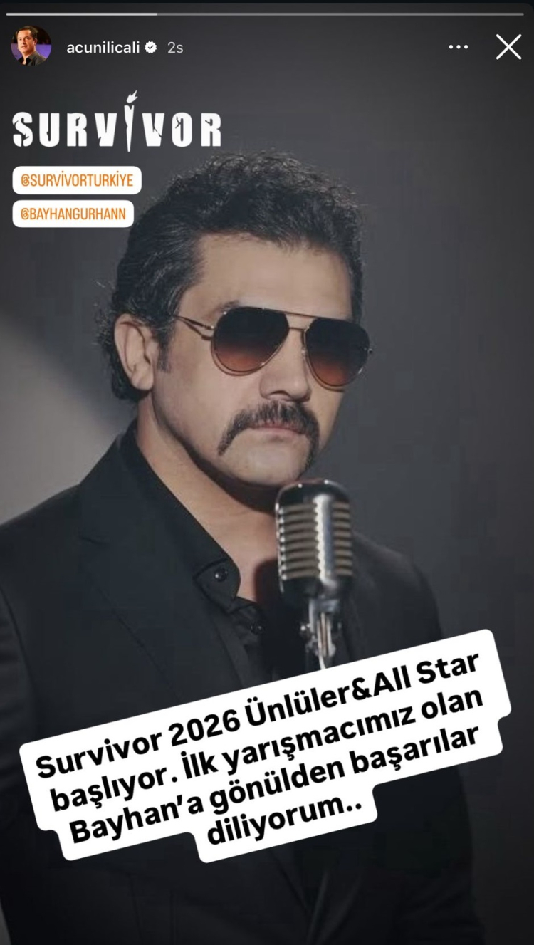 Survivor’ın yapımcısı ve sunucusu Acun Ilıcalı, kişisel sosyal medya hesabından yaptığı paylaşımda, 2026 sezonunun ilk yarışmacısının Bayhan Gürhan olduğunu açıkladı.