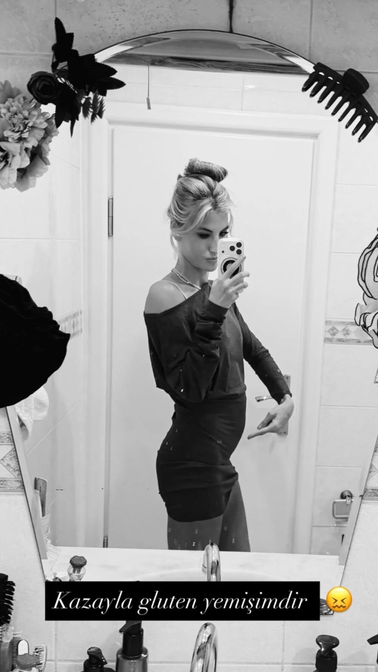 Gece boyunca yaşadığı şişliği "Kazayla gluten yemişimdir" diyerek açıklayan ünlü isim, mide hassasiyetini sosyal medya takipçileriyle samimiyetle paylaştı.