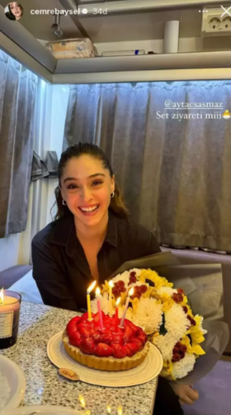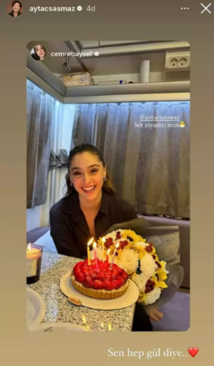 Cemre Baysel, paylaşımına 'Set ziyareti mi' notunu eklerken Aytaç Şaşmaz ise bu hikayeyi alıntılayarak 'Sen hep gül diye' açıklamasını ekledi.