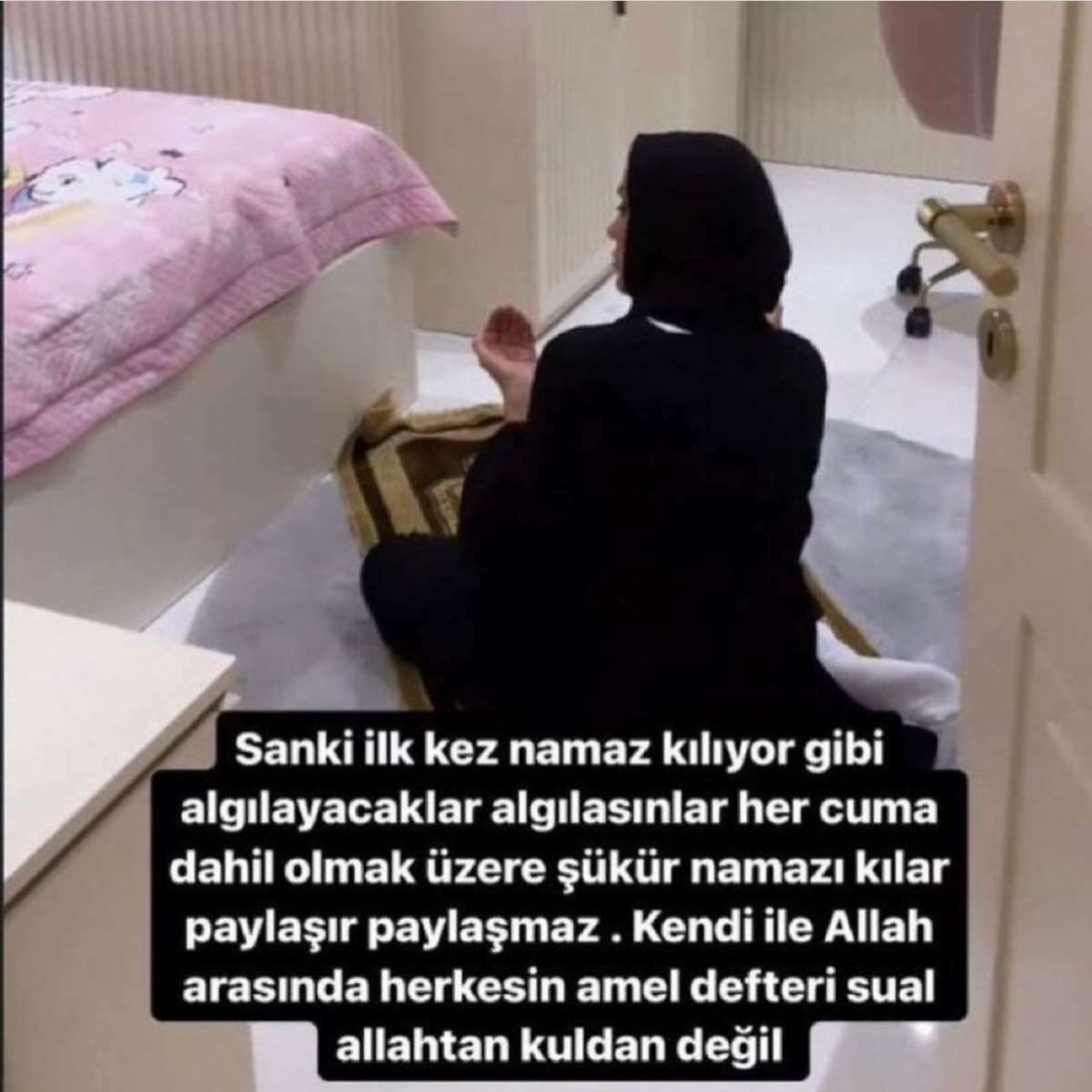 “Sanki ilk kez namaz kılıyor gibi algılayacaklar. Algılasınlar. Her cuma dahil olmak üzere şükür namazı kılar paylaşır paylaşmaz. Kendi ile Allah arasında. Herkesin amel defteri sual Allah’tan kuldan değil.”