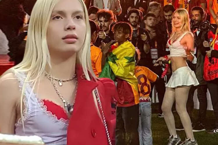 Sarı-kırmızılıların kutlamalarında yer alan Aleyna Tilki, Bafetimbi Gomis ve ailesiyle sahneye çıktı. O anlarda Tilki'nin kıyafeti de gözlerden kaçmadı.