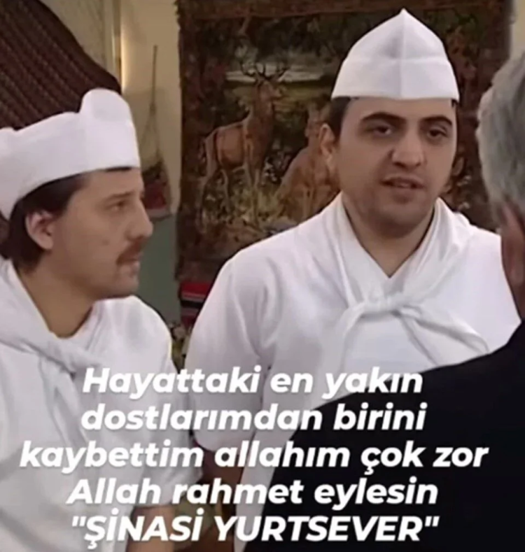 "Arkadaşlar, 53 yaşındayım ve 35 yıldır bu mesleğin içerisindeyim. İlk defa serzenişte bulunuyorum mesleğime. Hayattaki en yakın dostlarımdan biri Şinasi Yurtsever'in cenazesi kalkıyor ve ben onun yanında olamıyorum. Çünkü eğer bugün çekimimi yapmazsam yayın olamayacak. 150 kişi parasını alamayacak. Ne diyeyim? Şinasiciğim, kardeşim, canım, dostum beni affet."