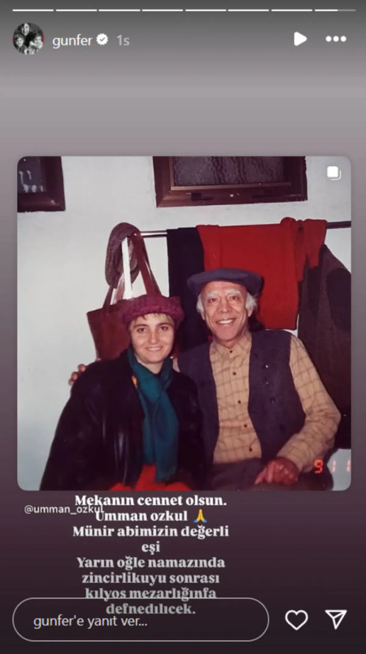 Acı haberi, Münir Özkul’un kızı Güner Özkul sosyal medya hesabından şu sözlerle duyurdu: