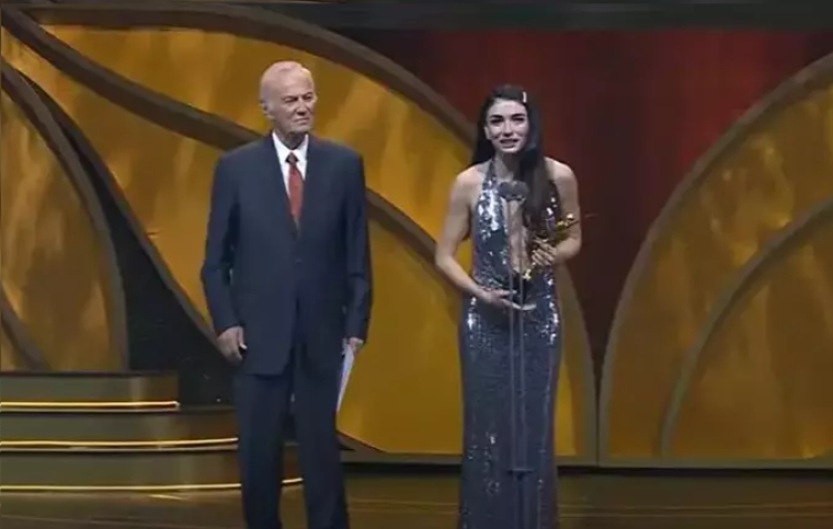 Ödül törenine katılan Hazar Ergüçlü, İnci Taneleri dizisinin 'En İyi Dizi' ödülünü almak için sahneye çıktı. Ödülünü usta sanatçı Ediz Hun'dan alan Ergüçlü, zaferlerini izleyicilerine adadı. İnci Taneleri, her bölümünde büyük ilgi görerek, seyircilerin beğenisini kazandı.
