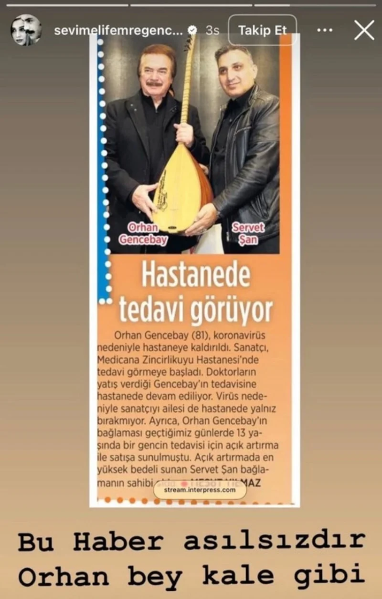 Emre mesajında, “Kontrol amaçlı hastaneye bile gidemeyecek miyiz? Orhan abiniz kale gibi maşallah. Allah onu korusun” ifadelerine yer vererek takipçilerini bilgilendirdi. Sanatçının rutin kontrollerin ardından taburcu edilmesi bekleniyor.