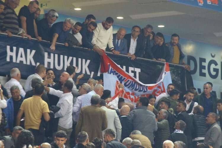 CHP eski milletvekili Turan Akdoğan’ın konuşması sonrası yaşanan gerginlik, salonda bulunan delegeler ve parti üyelerinin araya girmesiyle sona erdi.