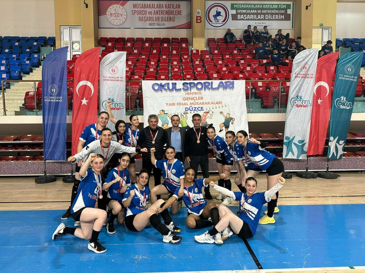Okul Sporları Hentbol Gençler Yarı Final Müsabakaları 08-11 Mayıs 2023 tarihlerinde Akçakoca 1000 seyircili Spor Salonu ile Bahçeşehir Spor Salonunda 15 farklı kafile ve toplamda 250 sporcunun katılımıyla gerçekleşti.