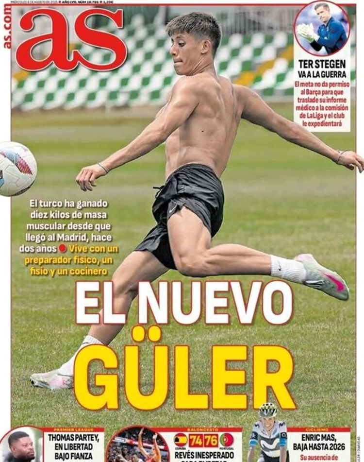 AS Gazetesi, Arda Güler’in fiziksel gelişimini “Yeni Arda Güler” başlığıyla manşetine taşıdı. Haberde, oyuncunun Real Madrid’e katıldığı 2023 yazından bu yana tam 10 kilo kas kazandığı belirtildi. Bu gelişim, sadece antrenman değil, özel yaşamındaki profesyonel destekle ilişkilendirildi.