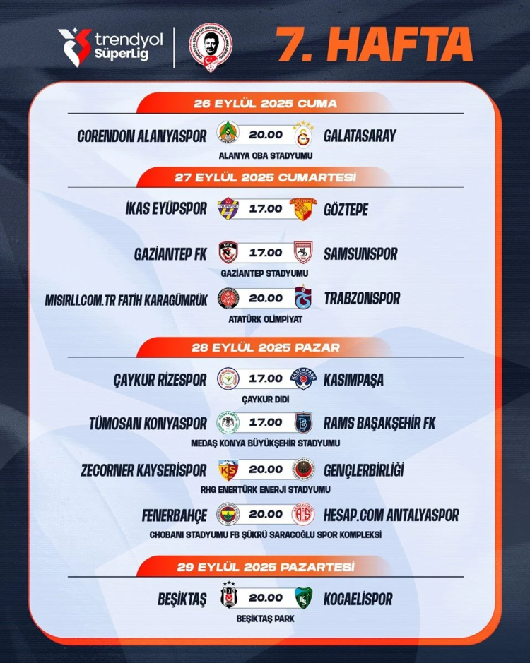SÜPER LİG 7. HAFTA PROGRAMI
