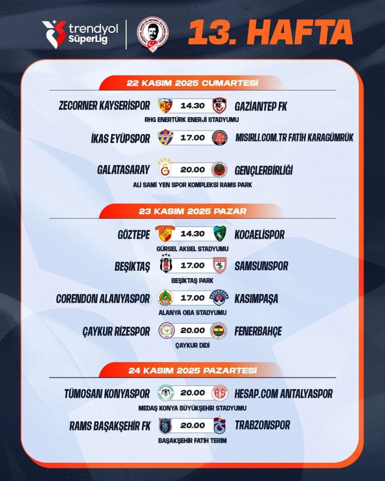 SÜPER LİG 13. HAFTA PROGRAMI