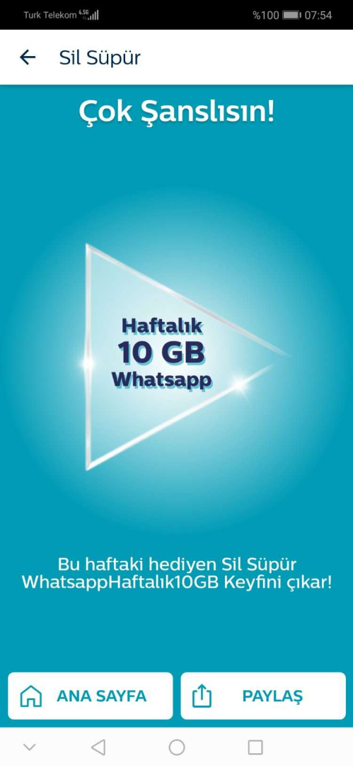 Türk Telekom Sil Süpür uygulaması, abonelerin her hafta milyonlarca bedava internet paketi kazanma fırsatı yakaladığı bir kampanyadır. Aboneler, Türk Telekom Online İşlemler uygulamasını indirerek ve uygulama içindeki Sil Süpür oyununu oynayarak internet hediyeleri kazanabilirler. Türk Telekom Sil Süpür kampanyası haftalık olarak düzenlenmektedir. Bu kampanya kapsamında aboneler, her hafta belirli günlerde Sil Süpür uygulaması üzerinden internet hediyeleri kazanabilirler. Kazanılan hediyeler arasında 1 aylık, 1 haftalık ve 1 günlük internet paketleri bulunmaktadır.