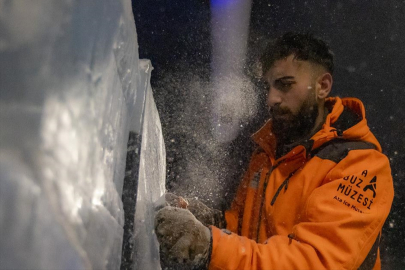 "Buzlar blok olarak üretilince testerelerle kesiliyor ve depolanıyor. Buzlar belli miktara ulaşacağı zamana kadar da proje aşaması olan çizim, tasarım, maket gibi işlemler yapılıyor. Çizimlerden sonra öğrencilerimiz, hocalarımızın kontrolünde uygulamaya geçiyor. Burada bir yapıyı sıfırdan inşa ediyoruz. Ortalama 1 aya bir yapı sonuçlanıyor. Müzemizin dünyadaki diğer örneklerinden farkı, sanat öğrencilerimizin burayı atölye gibi kullanmaları. Bu çalışmanın da her şeyini yaşayarak öğreniyorlar. Gelecekte de buz heykel sanatçılarının yetişmesine katkı sağlanıyor."