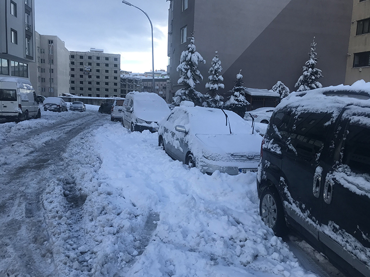 Cadde, sokaklar ile park halindeki araçların kar ve buzla kaplandığı kentte, vatandaşlar yol ve kaldırımlarda yürümekte zorluk çekti.