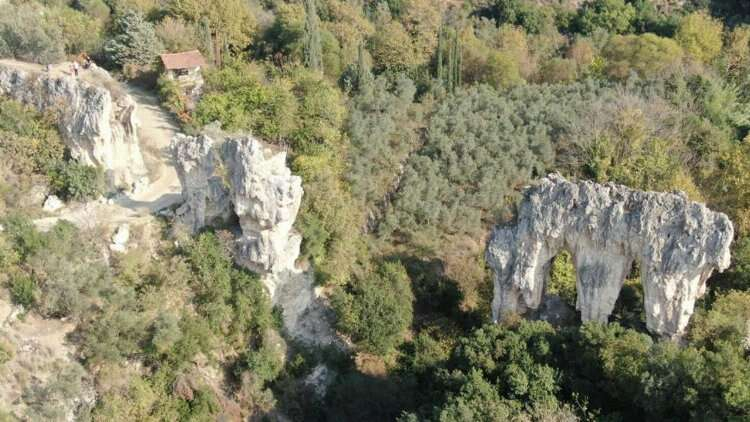 Trajan Su Kemerleri'nin Esenbulak Mahallesi mevkiindeki kısmı depremde tamamen yıkıldı. Yıkılan tarihi su kemerinden kopan devasa kayalar görenlerin dikkatini çekiyor.